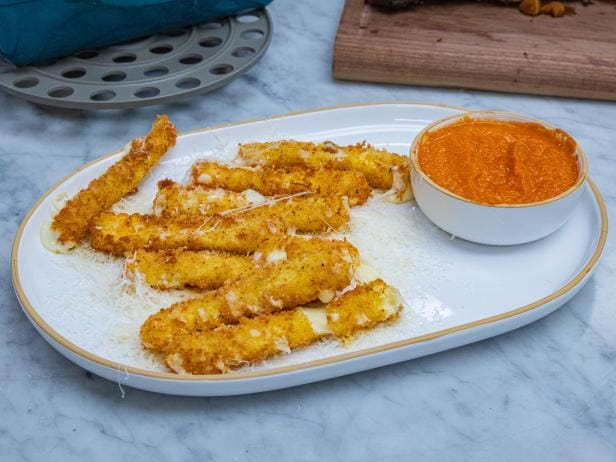 7. Serve: Serve the tomato sauce, warm, in a bowl for dunking. Arrange the sticks on a platter.