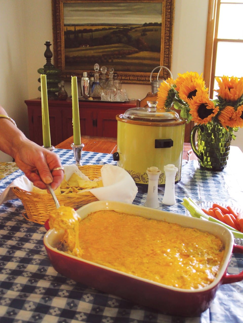 4. Bake for 25 minutes. Serve hot, with the celery sticks and crackers.