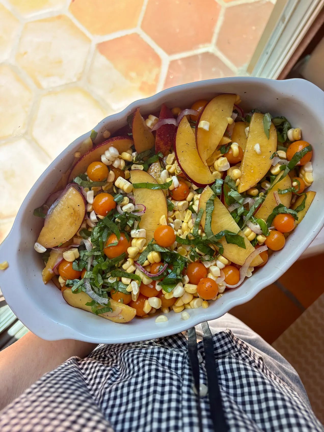 Summer Corn + Stone Fruit + Sungold Salad