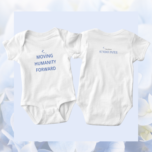 This tiny onesie is for the littlest growing humanitarian in your life. By purchasing this onesie—for your son, daughter, grandson, granddaughter, niece, nephew, god child, or little one—you can help the next generation Move Humanity Forward!
